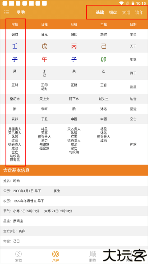 4、用户就可以在基础八字中查看到自己的财运方向。