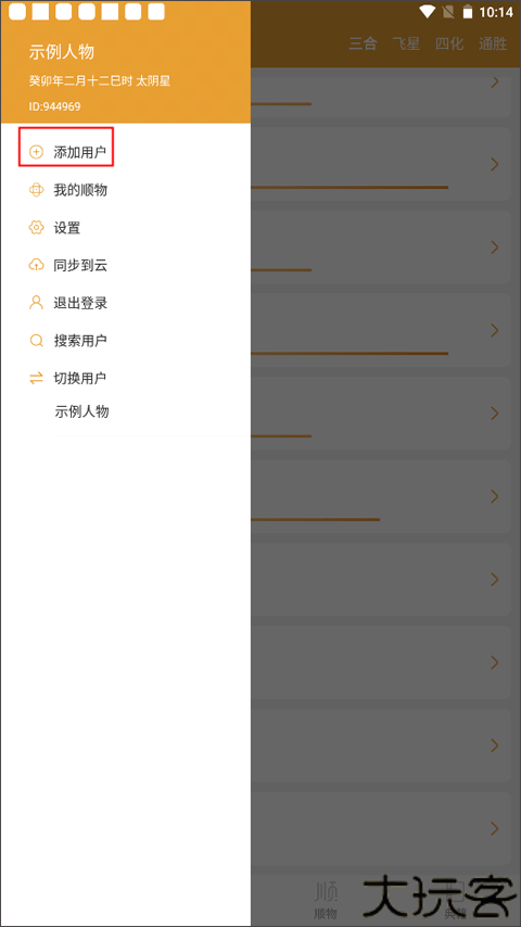 2、打开个人中心界面,这里有添加用户、我的顺物、同步到云等功能选项,点击添加用户。