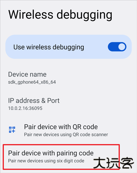 3、点按 “无线调试” 设置里的 “使用配对码配对设备” 选项