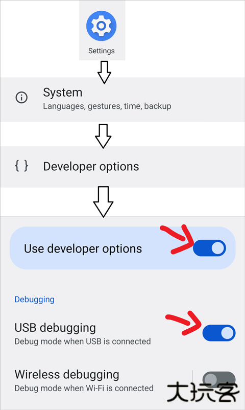 Wi-Fi 调试启动 (Android 11+):手机连电脑?不需要!适合较新的系统。不过有个小问题,重启手机后需要重新执行启动步骤。