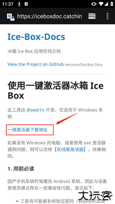 5、点完冰箱 App 里的按钮,手机浏览器会自动打开一个页面,不用慌,把这个页面的链接地址复制一下。在电脑浏览器里粘贴打开这个链接,找到下载 “冰箱激活器” 的链接,把它下载到你的电脑上