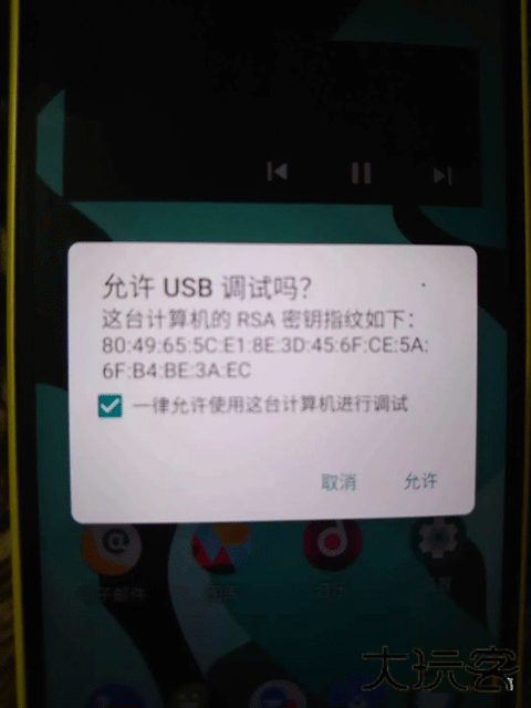 3、用数据线把手机连上电脑,手机会弹出请求 “允许 USB 调试” 的窗口,记得要勾选然后点 “允许”