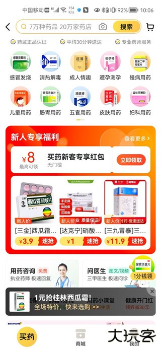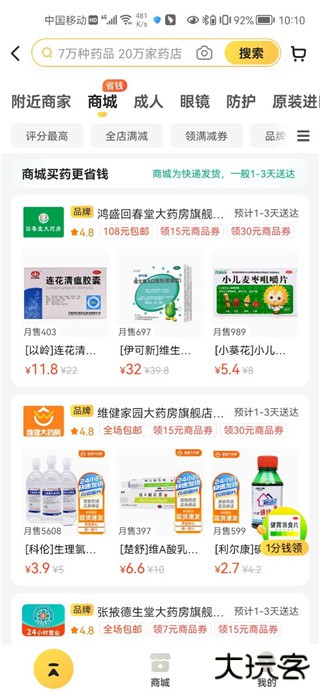 感冒灵、创可贴、健胃消食片这类家用常备药,直接商城批量下单,选 1-3 天快递配送,价格比单买便宜近 30%,还能满减凑单更划算。