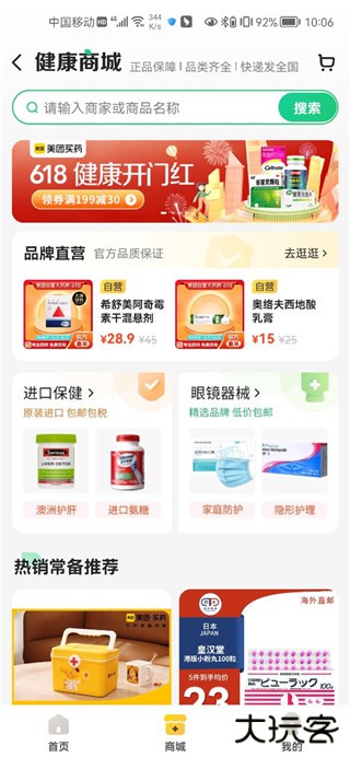 3、接着进入商城频道,那里是品牌直营店的集合,知名药企直接经营,买药质量有保障,不用担心假货问题。