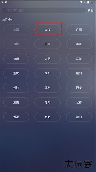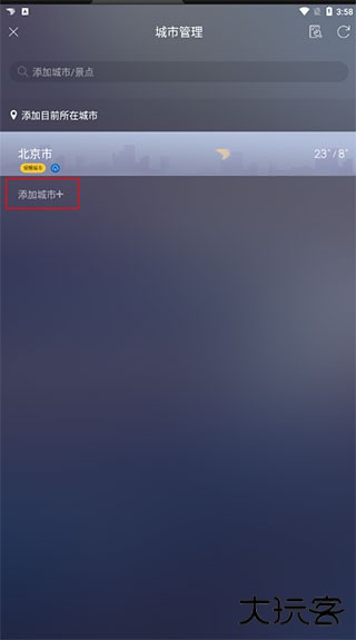 5、在城市管理界面内,定位 "添加城市" 功能按钮,点击该按钮。