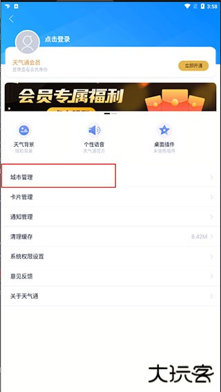 4、进入设置页面后,找到并点击 "城市管理" 选项。
