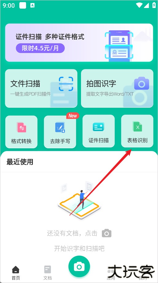 1、在软件首页找到 "表格识别" 功能入口并点击。