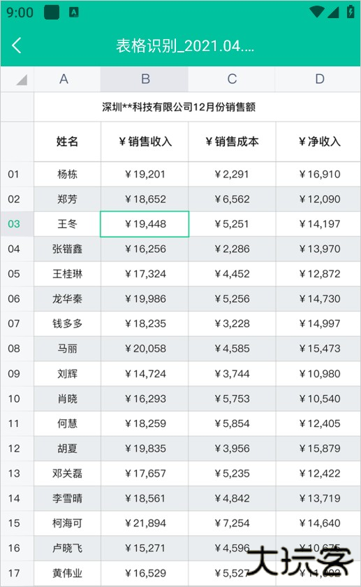 3、系统将自动展示转换后的表格内容,识别效果如下: