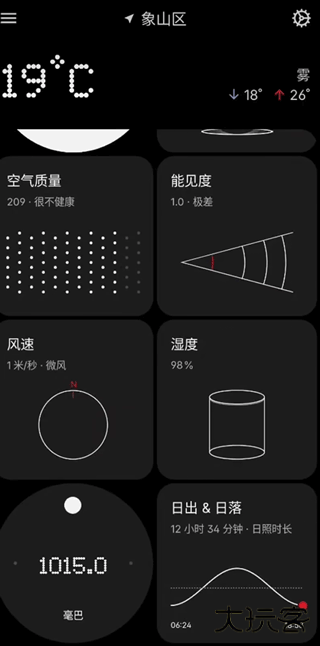 整体界面设计强调简洁性,同时融入丰富天气细节元素,为用户营造一种既简约又不失信息量的视觉感受。