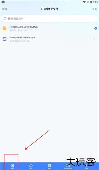 4、通过长按操作(持续按压 1-2 秒)选中目标文件,随后点击操作菜单中的 "取回" 功能按钮。