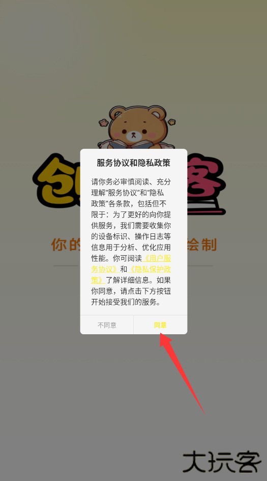 1、查阅协议并确认:启动 APP 后,请仔细阅读用户协议及隐私条款内容,确认接受所有条款后,选择同意按钮进入后续操作界面。
