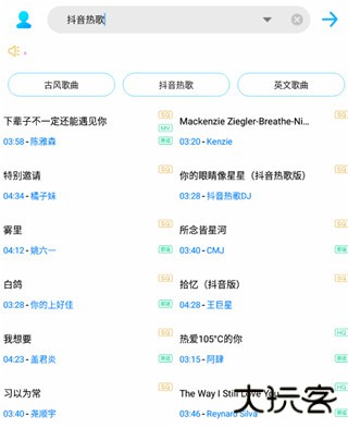 1、启动已安装的歌词适配官方版应用,进入主界面后选定目标歌曲类型(如抖音热歌)
