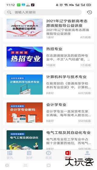 5、找到 “讲堂” 这个菜单项,点开它。里面集合了非常多关于不同专业的讲座视频,有空听听高校老师或者行业专家怎么说,对了解专业内容和将来就业前景非常有帮助。