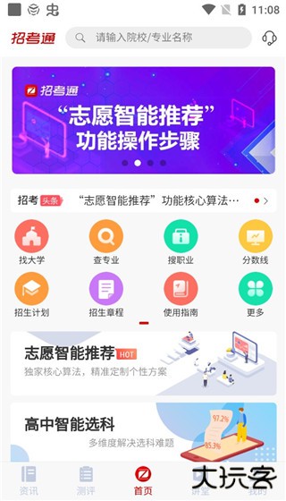 4、在 APP 的主页面(通常就是打开后看到的第一个界面),功能特别全!查找大学、了解专业的具体情况、查询历年录取分数和招生计划都能直接操作。