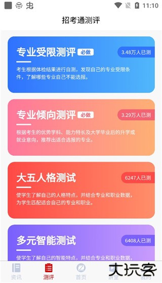 3、进入 “测评” 区域,这里可以做职业倾向测试或者其他与你兴趣相关的测评,帮你更了解自己适合的方向。