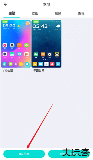 3、这时在屏幕的下方区域,会看到 “DIY 主题” 选项,果断点击它。
