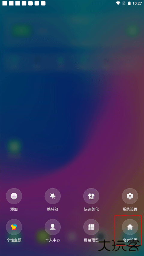1、长按手机桌面上的空白区域,看到屏幕底部浮现出的菜单选项后,选择 “桌面设置” 进入。