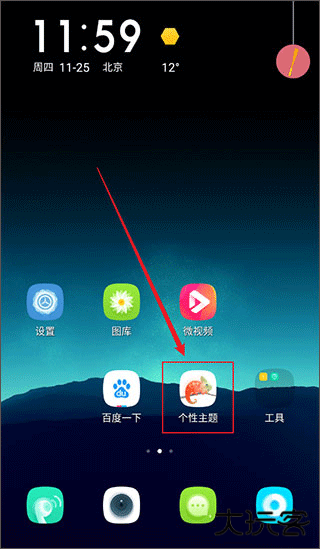 1、在手机桌面上找到这个美化软件的图标点开它,看到主界面后,点击那个特别显眼的 “个性主题” 进入浏览。