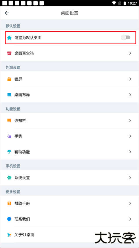 2、设置并锁定默认桌面:进入设置后,立即看向页面顶部区域,找到并开启两个关键的开关 - “设置默认桌面”和 “锁定 home 键”。系统接下来会让你选择将哪个桌面作为主桌面,务必选中 “91 桌面” 进行配置。完成后,它就是你手机最核心的展示桌面了。