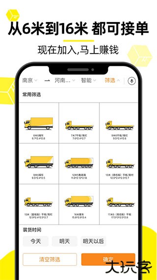 3、不论你的货车是 6 米还是 16 米,平台都有匹配的订单。完成注册流程,立刻就能开始接单赚钱啦!(小提示:提前准备好行驶证等信息,注册更流畅哦)