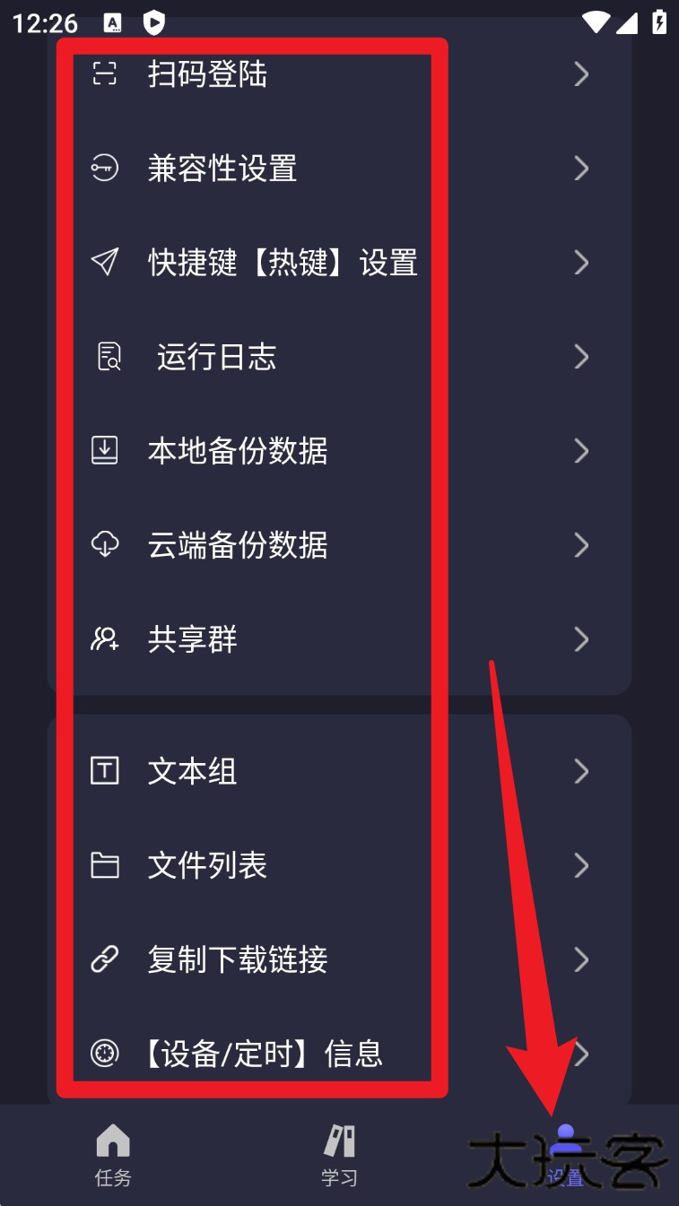 2.成功登录后点击底部导航栏的「设置」入口,进入功能扩展选项区域,可查看管理备份功能、设置热键等操作。