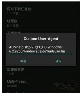 2、在下载设置页找到「User-Agent」选项 → 点击进入修改界面。