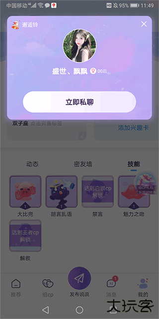 个性陪玩小店:创建专属陪玩服务,在主页晒出技能标签,发动态接单。私聊敲定细节,平台根据时段和标签智能推荐,让你订单多多。