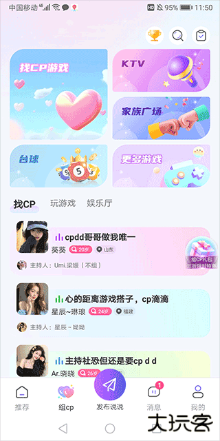 场景交友:想找人一起打游戏陪玩、开语音派对或者玩 K 歌抢唱?专有场景帮你迅速找到同类,聊天不冷场,轻松破冰。