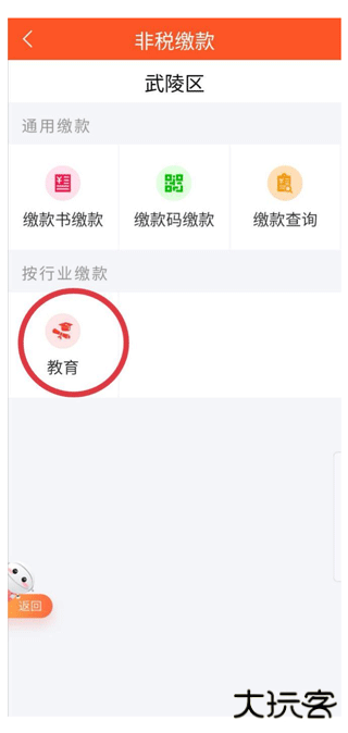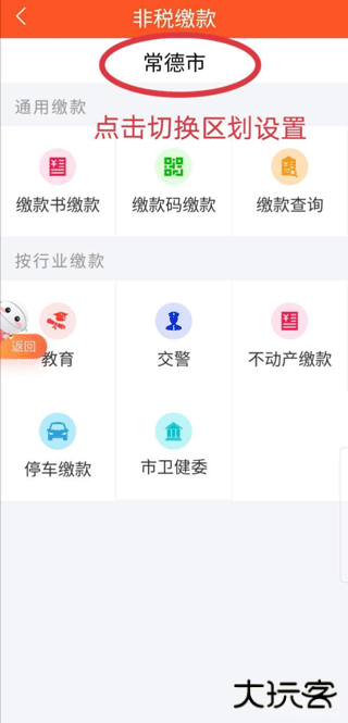 1、登录 "我的常德"APP 主界面,点击进入 "非税缴费" 服务模块。