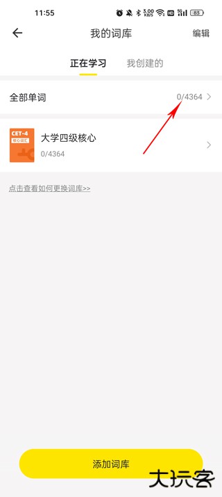 1、进入「我的词库」功能页面。在该页面中,点击「全部单词」选项。