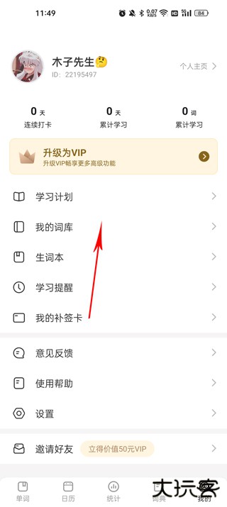 3、于个人中心页面中,找到 “我的词库” 功能选项并进行点击操作,进入词库管理模块。