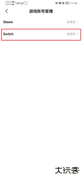3、进入账号管理界面后,直接点击 “Switch” 项以触发绑定流程。