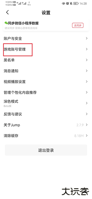 2、在设置菜单中,选择 “游戏账号管理” 选项开始账号相关操作。