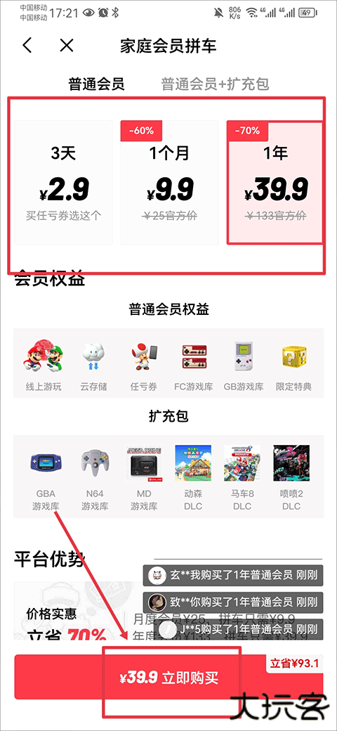 2、在套餐选择界面确定所需会员类型及周期规格后点击 "立即购买"。