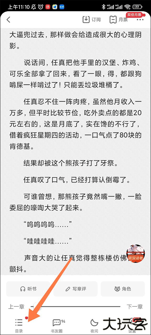 1、进入目标小说正文界面,用手指轻触屏幕中央区域,底部会自动弹出功能工具栏。