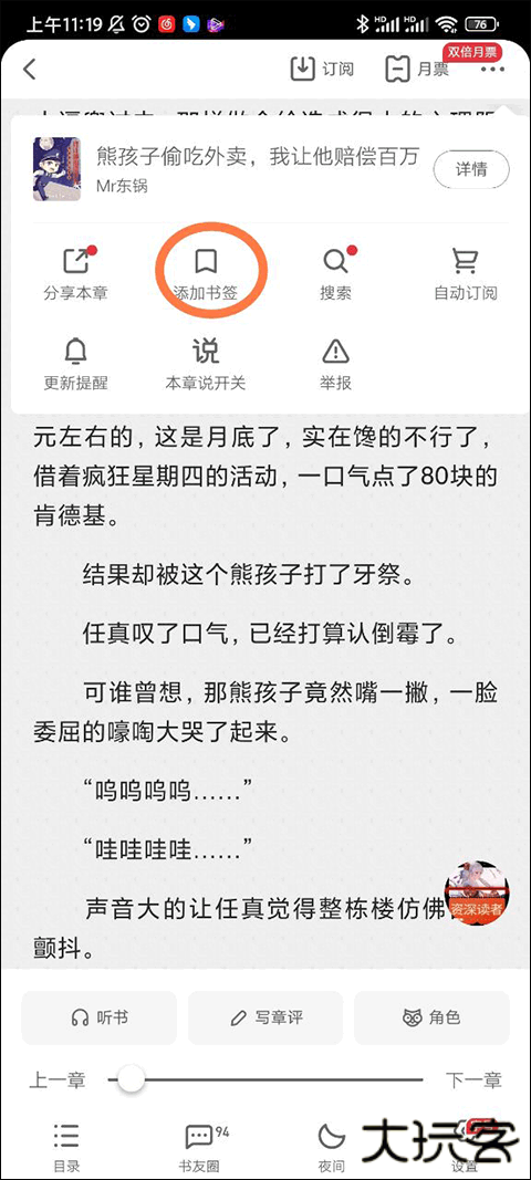 1、阅读过程中轻触屏幕中央,调出底部功能工具栏,将当前页面停留在需标记的章节位置。