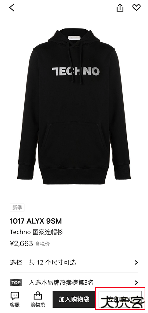 4、进入商品详情页后,点击页面下方 "立即购买" 按钮进入订单流程。