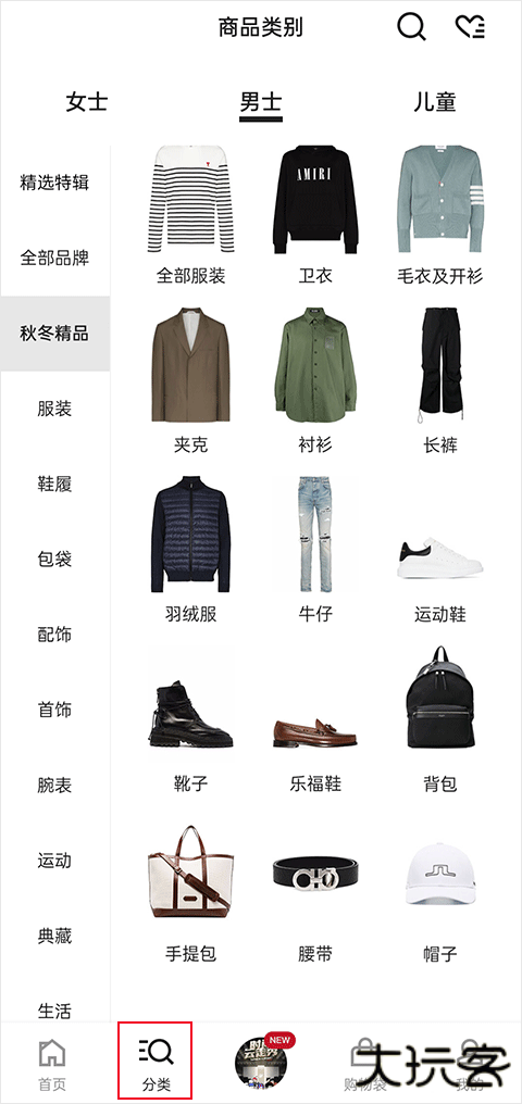1、打开 Farfetch(发发奇)App,在首页选择 "男士" 或 "女士" 购物频道以进入对应商品界面。
