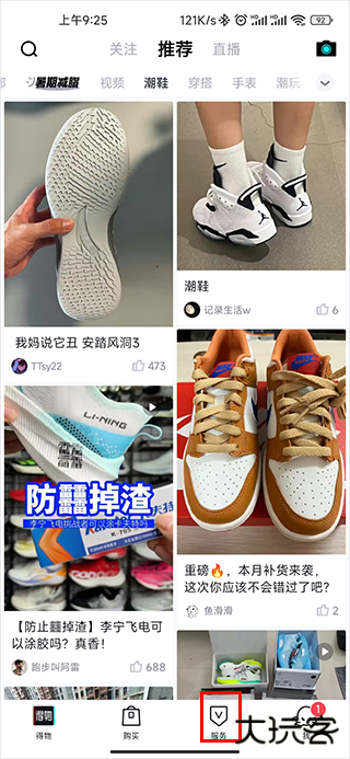 1、启动得物应用,在主界面导航栏中定位并点击 "服务" 功能入口。