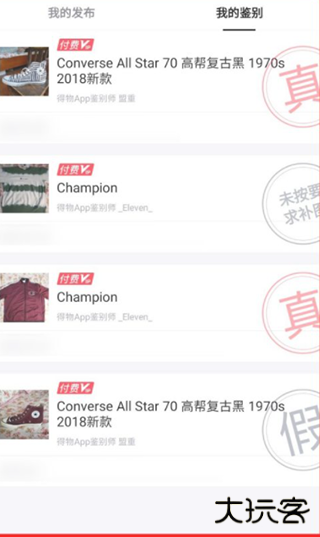 5、点击任意商品图片可进入详细鉴别报告页,专业鉴别师将基于用户上传的商品细节图片进行真伪判定并出具结论。