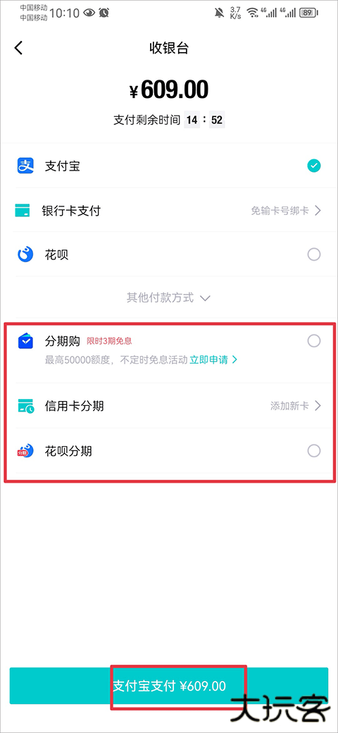 3、在支付阶段,系统提供多种分期支付选项供用户选择,包括分期购、信用卡分期或花呗分期等方式;用户依据个人偏好选定相应方式后,执行付款操作即可完成交易。
