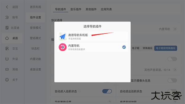 3、在导航插件列表中,选定 "高德导航车机版" 完成设定。