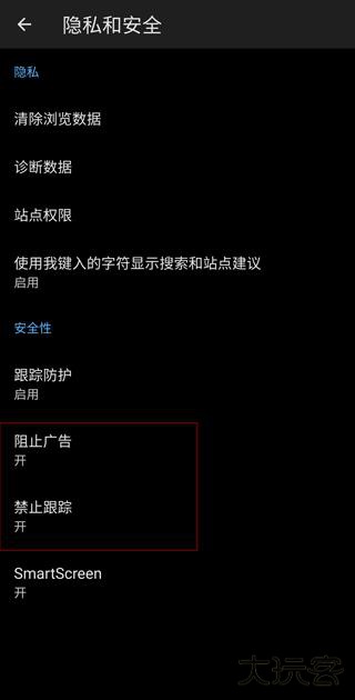 4、启用 "广告拦截器" 功能开关,建议同步激活 "阻止跟踪器" 选项以增强隐私防护。