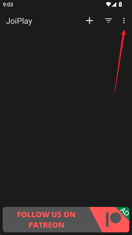 1、打开JoiPlay模拟器,点击界面右上角的功能菜单按钮。