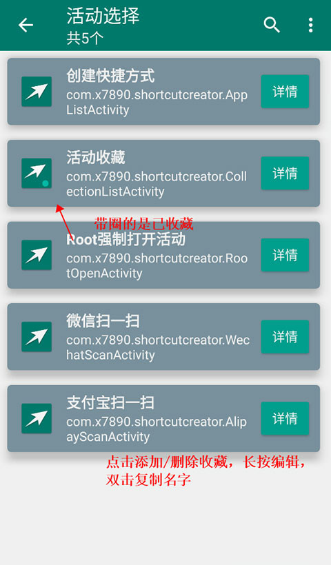 2、点击可添加或删除收藏App,双击可以复制应用的名称。