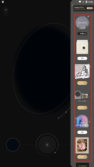 2、点击右下角星星和月亮的那个图案可以切换滤镜;