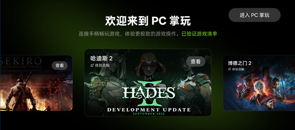 登录成功后,进入欢迎页可查看PC掌玩已验证支持的游戏名单。查看名单选择我们支持同时您游戏库中也有的游戏,即可进行下载畅玩体验。
