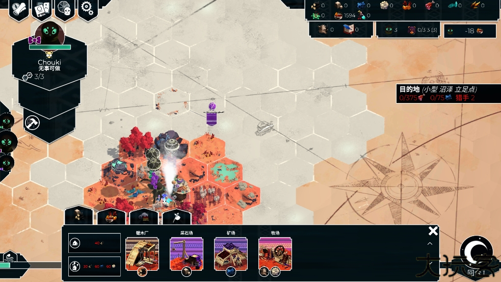 5、地图下一个立足点的二级路线是可以提前看到的,方便玩家提前规划,立足点是肥沃土壤,但后续路线要矿产可以提前采集。