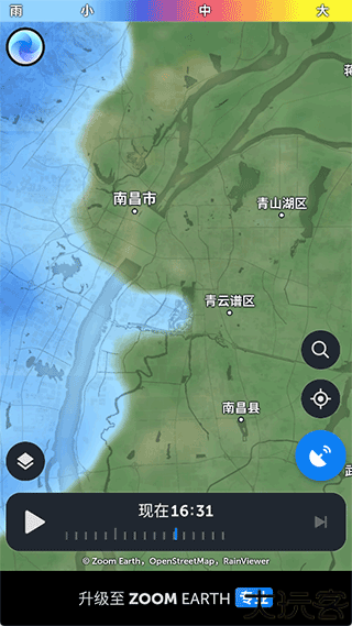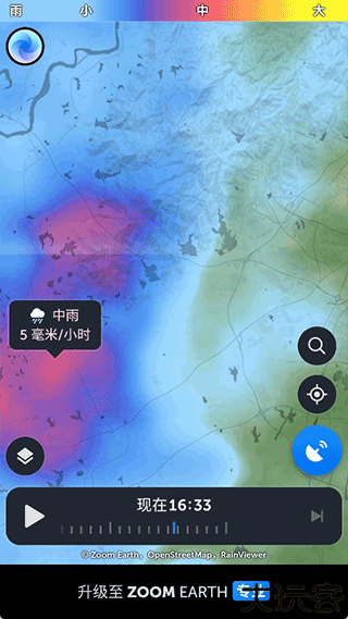 1、开启定位后即可查看本地降雨云图与气象覆盖情况。
