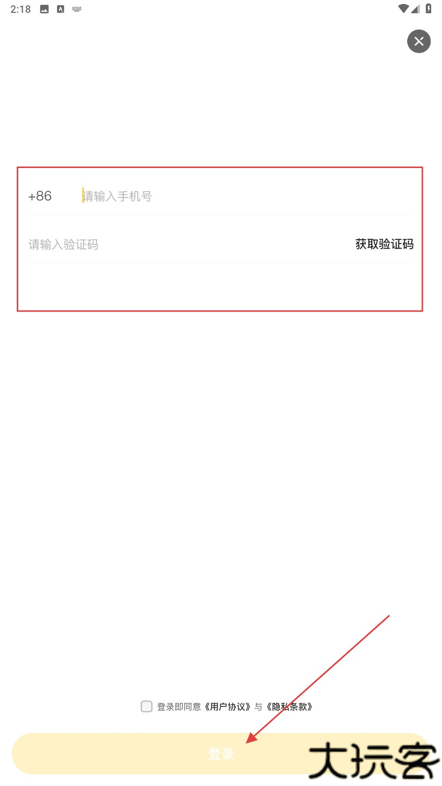 3、在这里就去输入手机号、验证码,勾选协议后点“登录”完成注册。
